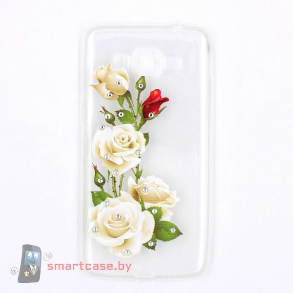 Чехол для Samsung Galaxy Grand Prime G530 ультратонкий и легкий аксессуар. Идеальное качество! Надежно защитит Ваш телефон от царапин, сколов и потертостей. Нежный рисунок и россыпь страз приятно украсят повседневность. Все порты и кнопочки идеально совпадают и остаются легкодоступными.